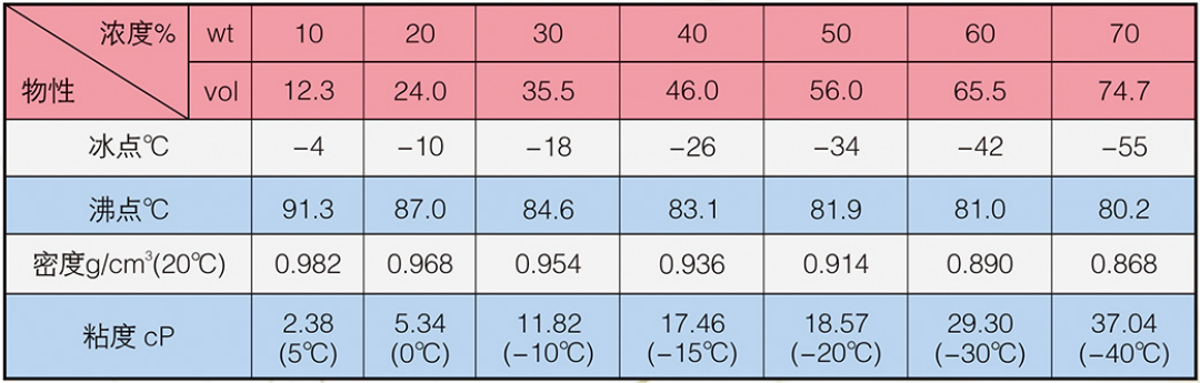 LM-3系列冰河冷媒由一元醇改性構成,主要添加劑包括防腐蝕劑,防霉劑,增溶劑等。外觀為淺色液體,實際無毒。20℃時,原液密度為0.820~0.830g/cm',粘度為1.68mPa·s(cP),比熱為0.612cal/g·℃,熱導率為0.20W/m·K。沸點高于70℃,冰點低于-100℃,閃點為17℃。