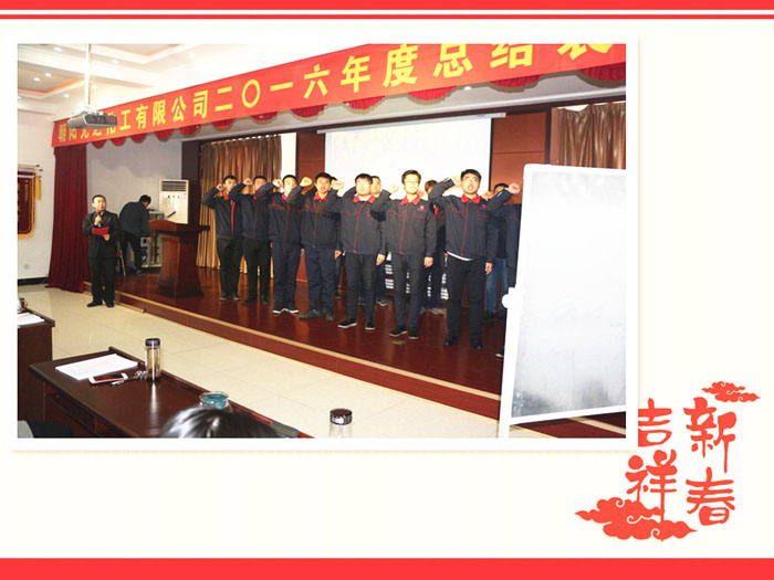 最后公司董事長(zhǎng)白松泉做大會(huì)總結(jié),回顧公司2016年的工作,給予了充分的肯定,解讀公司各項(xiàng)制度,激勵(lì)員工積發(fā)揮自己的特長(zhǎng),為公司,為人類(lèi)文明貢獻(xiàn)力量!2016年是公司發(fā)展壯大的一年,公司新廠(chǎng)區(qū)正在建設(shè)中,各項(xiàng)工作取得了圓滿(mǎn)的成功,2017年的計(jì)劃和藍(lán)圖已經(jīng)描繪,朝陽(yáng)光達(dá)化工有限公司上下將精誠(chéng)團(tuán)結(jié),齊心協(xié)力,銳意進(jìn)取,為開(kāi)創(chuàng)公司改革發(fā)展新局面而努力奮斗。