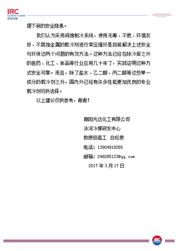 以上是我公司對(duì)《設(shè)計(jì)規(guī)范》提出的意見(jiàn),同時(shí)也需要同行們的監(jiān)督和幫助,歡迎廣大冷庫(kù)業(yè)主,工程商,上下游企業(yè)來(lái)電咨詢冰河冷媒載冷劑制冷系統(tǒng)!