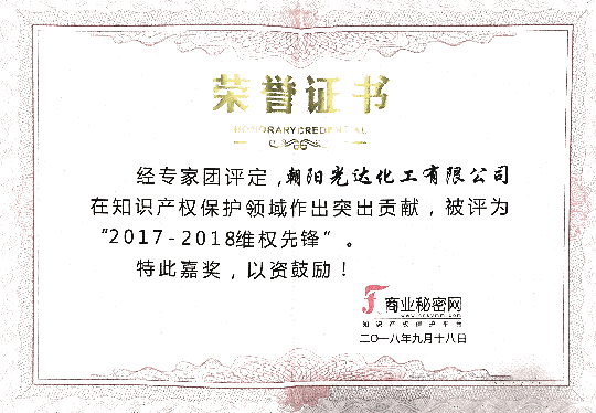 我公司被評(píng)為2017-2018維權(quán)先鋒