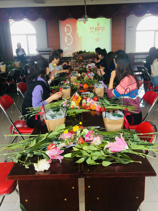 今天冰河集團(tuán)領(lǐng)導(dǎo)特意從外面聘請(qǐng)來專業(yè)的插花老師,并購買了若干鮮花在公司六樓會(huì)議室特意為女士們舉辦了一場插花課活動(dòng),為了讓女士們?cè)诠ぷ髦嘤幸粋€(gè)愉悅的心情,也為了感謝他們?yōu)楣灸瞰I(xiàn),證明了女人依舊能夠撐起一片天!