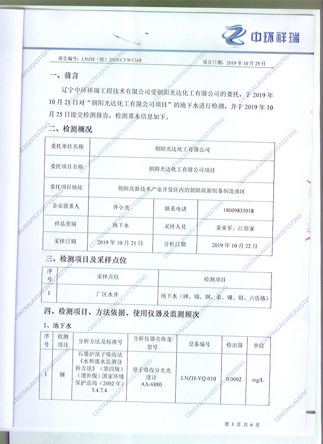 朝陽光達(dá)化工有限公司土壤檢測(cè)報(bào)告公示