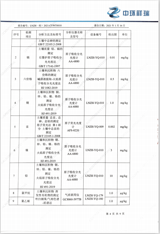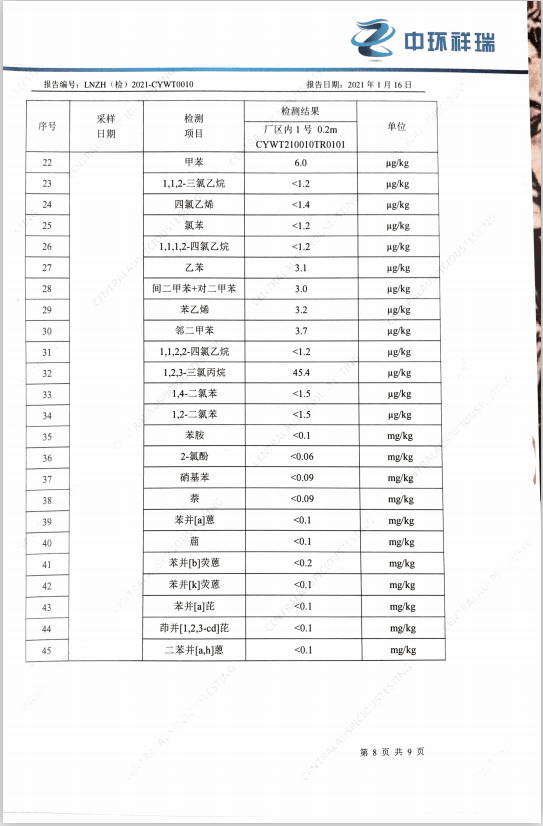 朝陽光達(dá)化工有限公司西廠區(qū)土壤檢測報告公示