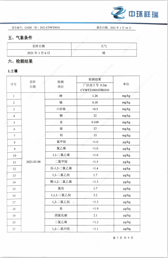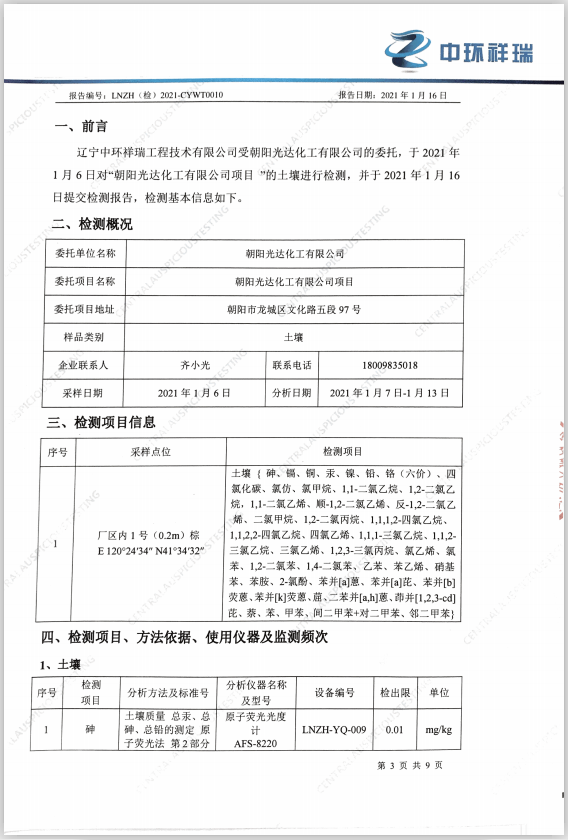 朝陽光達(dá)化工有限公司土壤檢測報告公示