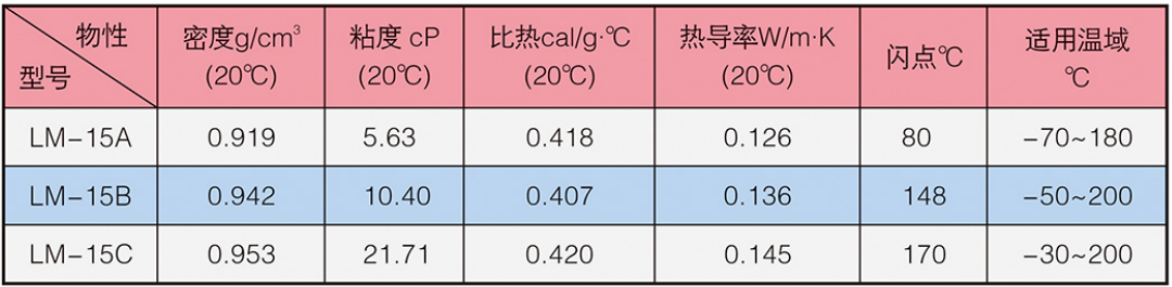 LM-15系列冰河冷媒由聚硅氧烷改性而成。外觀為無色或淺色液體,不溶于水。具有生理惰性、良好的化學(xué)穩(wěn)定性、凝固點(diǎn)低、使用壽命長等特點(diǎn),對以金屬為代表的眾多材料,幾乎不會產(chǎn)生不良的影響,可應(yīng)用于醫(yī)藥、化工、新能源等領(lǐng)域的制冷系統(tǒng)。