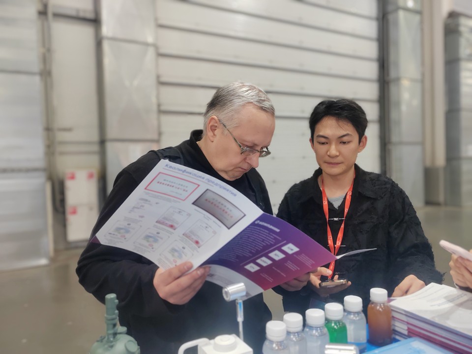 展會期間,冰河冷媒憑借低冰點、高導熱性、化學穩(wěn)定性強的產(chǎn)品優(yōu)勢,以及無腐蝕、寬溫域、環(huán)保安全的核心特性,成功吸引眾多俄羅斯及東歐制藥企業(yè)駐足咨詢,團隊人員針對合成控溫、低溫保存、精準溫控等應用場景,提供定制化技術(shù)解答,充分展現(xiàn)產(chǎn)品在解決傳統(tǒng)載冷劑腐蝕設(shè)備、效能低下等痛點上的顯著成效,助力制藥企業(yè)實現(xiàn)降本增效與合規(guī)生產(chǎn)的雙重目標。